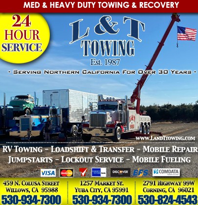 We offer fast and professional, Towing & Truck Repair services to all of Northern California! We also offer a full shop facility. Our shop hours are 8a to 5p, M/F, with weekend hours available by appointment. Now with locations in Willows, Corning and Yuba City!! Our services include: